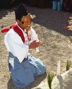 菅原神社御田祭り 2002年3月17日(日) 晴 祈りを捧げる「田主」。 | 風邪で咽が痛い。さてやっと菅原神社御田祭りの写真の電子化を開始。撮影は昨年2月25日。 | |