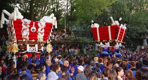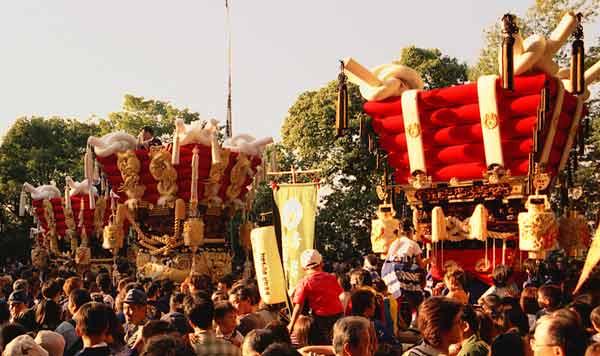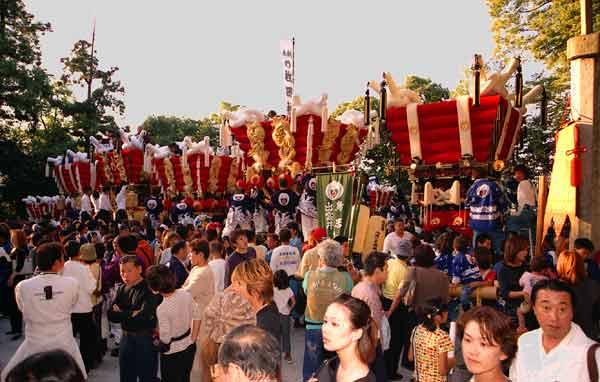 枚岡神社秋祭り21 2002年10月2日(水) 晴 枚岡神社秋祭り(東大阪市)。布団太鼓が拝殿下の広場へ集結。2001年10月。 | 今日は久しぶりの晴天。疲れた。 | |