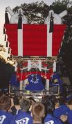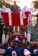 枚岡神社秋祭り27 2002年10月8日(火) 雨 枚岡神社秋祭り(東大阪市)。布団太鼓が拝殿下の広場へ集結。2001年10月。 |
