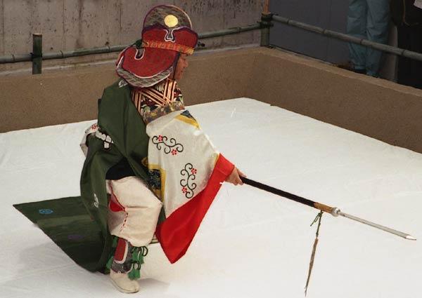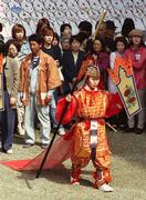唐招提寺うちわ撒き42 2002年12月26日(木) 晴/曇 舞楽(2番目)。唐招提寺(奈良市)、2002年5月。 |