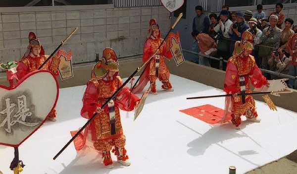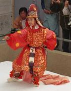 唐招提寺うちわ撒き26 2002年12月10日(火) 晴/曇 舞楽(2番目)。唐招提寺(奈良市)、2002年5月。 |