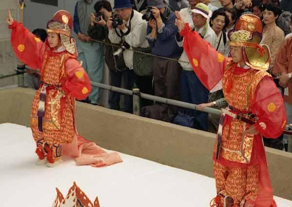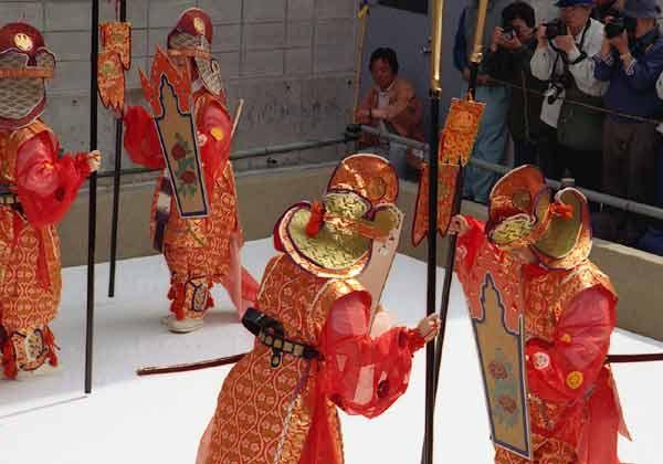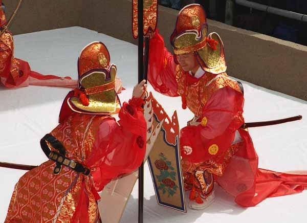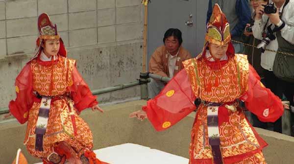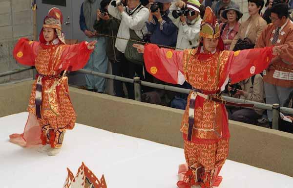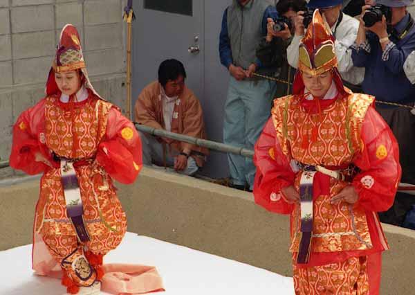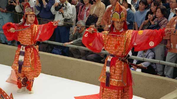 唐招提寺うちわ撒き22 2002年12月6日(金) 晴/曇 次の舞楽の踊り手が登場。唐招提寺(奈良市)、2002年5月。 | 疲れた。 | |