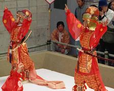 唐招提寺うちわ撒き36 2002年12月20日(金)36 晴/曇 舞楽(2番目)。唐招提寺(奈良市)、2002年5月。 |