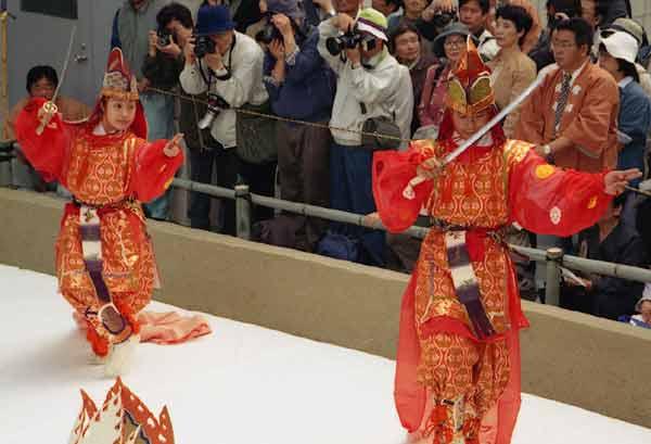 唐招提寺うちわ撒き34 2002年12月18日(水) 晴/曇 舞楽(2番目)。唐招提寺(奈良市)、2002年5月。 |
