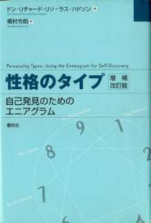 今日は昨日とは対照的に、雨だった。さて今日の話題は大阪ドーンセンターで開催されたエニアグラムのワークショップ。エニアグラムとは人間の性格を9通りに分類することで、自動的習慣的な行動化を意識化せんとする考え方である。9つのタイプの呼称は★1:改革する人 ★2:人を助ける人 ★3:達成する人 ★4:個性的な人 ★5:調べる人 ★6:忠実な人 ★7:熱中する人 ★8:挑戦する人 ★9:調停する人 であるから、これだけでもどんな人物像か、大まかには分かって頂けると思う。ワークショップでは先ず、なるべく知らない人とペアになって自己紹介(といっても○○に関してどうでしたか、といった議題を講師が設定する)を行い、互いの緊張をほぐす。続いてタイプごとに集まり、講師が設定した問題(・・・困った時/幸せな時など○○な状況であなたはどう感じますか・・・)に対して回答をまとめ、絵で表現すると共に、タイプの集まりの中で共通性があれば触れる。そして各自発表。実はこの段階でもすぐ話し合いの始まる集まりもあれば、ずっと静かな集まりもあって、タイプの特徴がすぐに現れる。無論発表内容も、皆独自で面白いのだが、これまたタイプの特徴をくっきりと示している。またタイプの集まりの中でも少し違うかな、という印象を与える人がいる場合もある。○×式のタイプテストは単純な集計であるから、どうしても異なるタイプに高得点が出る場合もある。そういう場合には、自分自身の瞬間の体や心の反応をもう1度点検してみる必要がありそうだ。因みに筆者は'98年からワークショップへ参加しているが、筆者が単独で描く絵は殆ど他人の登場しない絵ばかりである。とすればどのタイプに属するか想像出来るであろう。なお、写真は今回のワークショップに於けるエニアグラムの解釈の原器となっているD.R.RisoのPersonality Typesの日本語訳「性格のタイプ」。この種の訳本には抄訳が多い(例えばD.KeirseyのPlease Understand Me I=人間x人間 セルフヘルプ術はそれだ)が、これは完訳だ。 | |