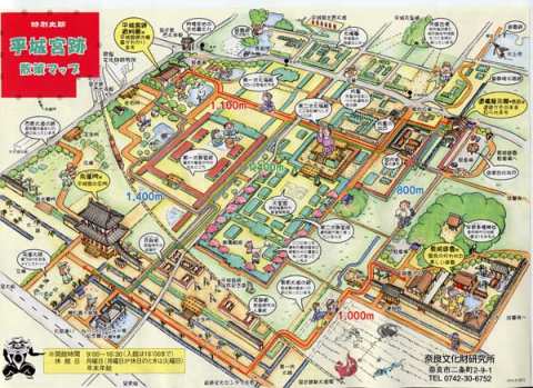 今日は晴の暑い日だった。今日は平城宮跡からその周辺、即ち水上池付近を廻った。写真は平城宮跡、即ち奈良市中心街からやや西の地域にある昔の都の散策図である。朱雀門が復元されているのみならず、現在、大極殿の工事も行われている。平城宮跡は桜の名所でもあるが、もう散り始めている。