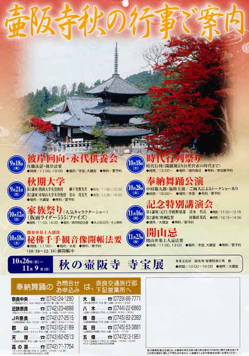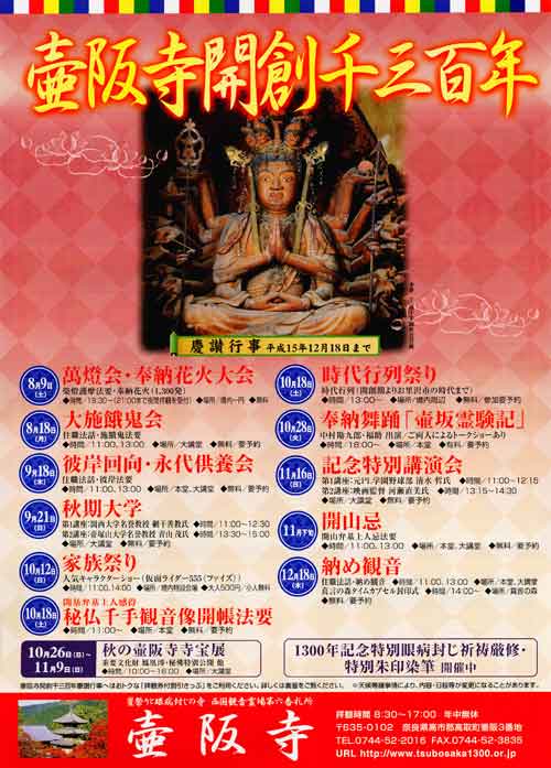 今日は曇。左は、壷坂寺開創1300年記念に際して行われる慶賛行事のパンフレット。壷坂寺は奈良県高取町にあり、近鉄壷坂寺からバス。夏のラベンダーで有名。それにしても、最近忙しく、昨日今日と出勤。