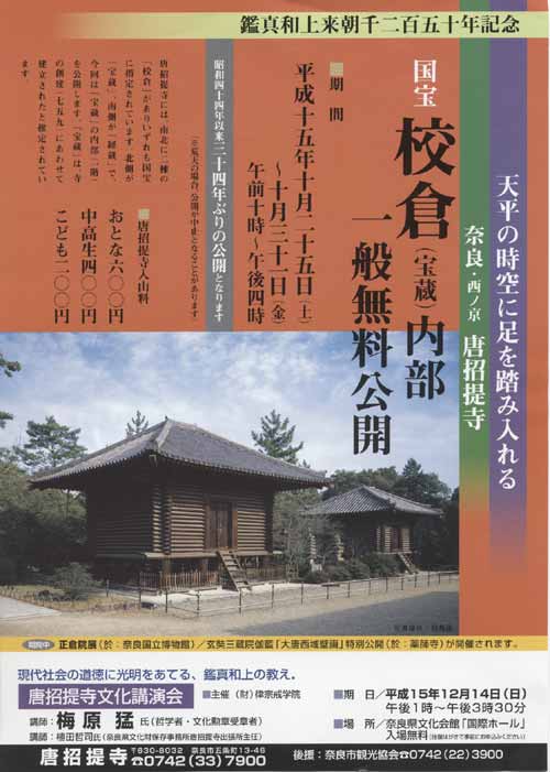 今日は雨。10/9には第163回大和とくとく朝市「大朝市」のパンフレットを出したが、その場所は県営競輪場駐車場、即ち秋篠寺の近くだった。秋篠寺からずっと東、平城京跡の北東へ行くと法華寺・不退寺・海龍王寺がある。左はこの3つの古刹で行われる特別展の案内だ。インターネット上では合併で誕生したコニカミノルタからユニークなレンズ交換可能なデジカメが発表される、との噂が流れている。"ユニーク"の意味は何か。ライカの如きレンジファインダー式のデジカメだろうか。それから10/10の歌の題名は「想い出のボレロ」かな、と思うとそうではなく「懐かしのボレロ」(作詞・藤浦洸、作曲・服部良一)。藤山一郎の持ち歌だが、雰囲気的に10/9の「南の薔薇」に似ているから、筆者はこの2曲を混同していた。ところでボレロ、と言えば実は「想い出のボレロ」なる歌もある。山川越えて 想い出は 流れる雲か 夜の霧 嘆きの歌か ボレロの太鼓 涙に濡れて 悲しく強く あの夢 裳裾に絡む 花びらは 悲しい恋に 散った花 情けに更けて ボレロの歌は 心の窓を 優しく叩く あの音 苦しい恋は かの空に 虚しく掛けた 空の虹 昨日の夢と ボレロの踊り 嘆けば胸に 心が燃える 我が胸 南国の情熱が溢れる「懐かしのボレロ」とは対照的な気だるく物悲しい歌だ。作詞は藤浦洸、作曲は万城目正。歌う映画スター高峰三枝子の持ち歌には藤浦洸の詞が多いが、この「懐かしのボレロ」も例外ではない。 | |