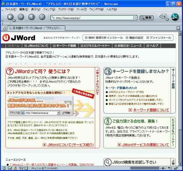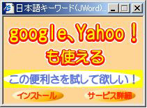 まぁ、極端な悪さをしない、と言う意味に於いて無害と言えば無害だが、インストールは楽々、アンインストールはこのソフトの作成元であるhttp://www.jword.jp/(下図)にアクセスしてやっと可能、と言う具合である上、ブラウザの「ヒストリー消去」「ツールバークリア」の操作を行っても自動挿入されているリンクは消えない為、筆者はもはやウィルスの一種ではないか、とさえ思っている。こんな事を書いているのも以前、うっかりインストール画面を消した筈なのに実は「はい」と答えてしまい、その結果かなりの期間、「この便利さを試して欲しい」となっている最初の画面の宣伝文句とは正反対の不快感に苛まれたからだ。