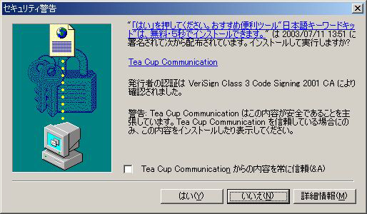 | ウィルスではないが怪しい | 2003年11月2日(日) |