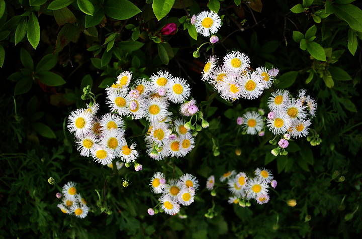 | 今日は曇。下の写真はヒメジョオンか何か。筆者は植物に疎いので良く分からぬが、ヒマワリ、タンポポ、コスモス等と同じ菊の仲間である事は確かだ。 | ||||||||||||||||||||||||||||||||||||||||||||||||||||||||||||||||||||||||||||||||||||||||||