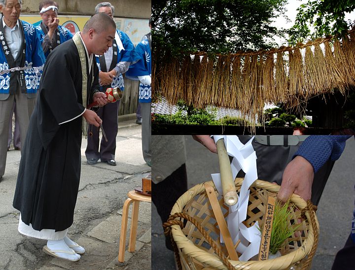 | 今日は昨日の雨も止み、何とか曇であった為、田原本町矢部の"綱掛"を見物。もう1つの候補は蛇穴汁掛祭り(御所市蛇穴·野口神社)だが、少し近い田原本町に決定。午前11:30頃、近鉄田原本駅を降り、そこからほぼ西南の方角にある矢部へ。さて具体的な祭りのある場所だが、事前の調査では単に矢部としか判明していない。だが祭りは、何処か特定の社寺の主催ではない場合でも、伝統行事である限り、社寺と無関係ではあり得ないと考え、地図に名前のある安楽寺·杵都岐神社を目指し、延々と国道24号線バイパス経由で歩いた。そして杵都岐神社をぶらぶらしていた時、鐘の音が聞こえたが、丁度下の写真(甲)の左半分の様な読経が行われていた。写真(甲)右上は木に掛かった綱、右下は読経の際に供えられていた御札等。この後、綱は街を廻る、と思ったが··· | |||||||||||||||||||||||||||||||||||||||||||||||||||||||||||||||||||||||||||||||||||||||||||||||||||||||||||||||||||||||||||||||||||||||||||||||||||||||||||||||||||||||||||||||||||||||||||||||||||||||||||||||||||||||||||||||||||||||||||||||||||||||||||||||||||||||||||||||||||||||||||||||||||||||||||||||||||||||||||||||||||||||||||||||||||||||||||||||||||||||||||||||||||||||||||||||||||||||||||||||||||||||||||||||||||||||||||||||||||||||||||||||||||||||||||||||||||||||||||||||||||||||||||||||||