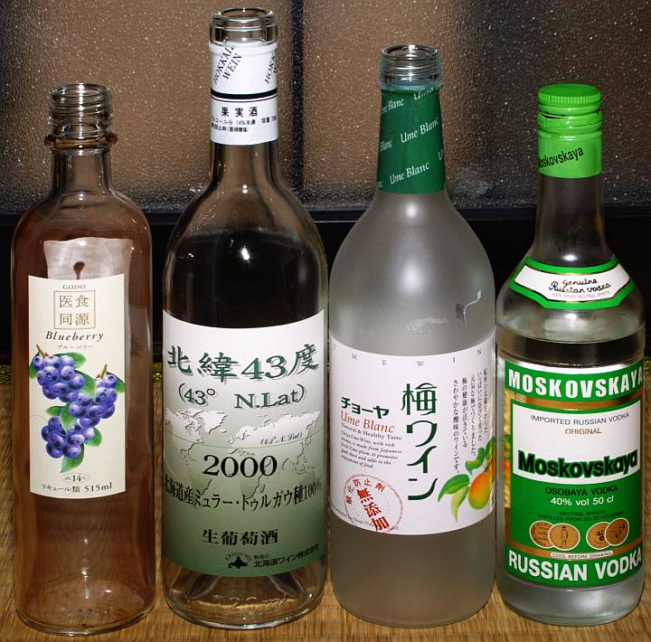 今日は曇だが、台風接近故風も強い。 Return-Path: <kRegal@wowdealz.info> Received: from wowdealz.info ([222.233.52.132]); Tue, 7 Sep 2004 03:03:20 +0900 (JST) (envelope-from kRegal@wowdealz.info) Message-Id: <5h5b1v0nw3ki14gn0t3f.46vh5u2nyn3@wowdealz.info> Date: Mon, 06 Sep 2004 11:00:23 -0800 Received: from wowdealz.info [222.233.52.132] by 3536.wowdealz.info with SMTP; Mon, 06 Sep 2004 11:00:23 -0800 Reply-To: xGiel@wowdealz.info From: "Winter Promotions" <kRegal@wowdealz.info> X-UIDL: >=H!!`CW!!#M;!!@Tn!! X-NAS-Bayes: #0: 0.999985; #1: 1.53835E-005 Subject: Winter Airline Promotion X-NAS-Classification: 1 X-NAS-MessageID: 345 X-NAS-Validation: {3ED76BFB-4B37-45EC-95DD-10740EBCD4BF} Content-Type: text/plain; charset=us-ascii Content-Transfer-Encoding: 7bit -------- Winter Airline Promotion! "Jet Out of Town" Two Free Round-Trip Worldwide Airline Tickets Find out more information on how at http://wowdealz.info/t/ CSC Marketing, PO BOX 451, Clarcona, FL 32710-0451 Please visit http://wowdealz.info/o/ to stop further contact. さて今日は関西地区への台風接近の為、会社から"すぐ帰れ"との指示が出た。そこで寄り道して買ったのが下の写真右のMOSKOVSKAYAだ。ロシア物。アルコール濃度40%の典型的なウォッカだが、ロシアウォッカは西側ウォッカに比べ原料固有の雑味が残っている分、却ってまろやかで飲み易いとされている。そう言われてみればそんな感じもないではないが、筆者の鈍い舌はそうした言葉で表現された概念が先行しない限り、何の差も感じない。而るに左3本はもう、呑んでしまったリキュールとワインだ。なおウォッカ他蒸留酒の話は http://homepage3.nifty.com/~tanida/my_home_bar/ http://home7.highway.ne.jp/rakkyo/index/index-2.htm に詳しい。 | ||