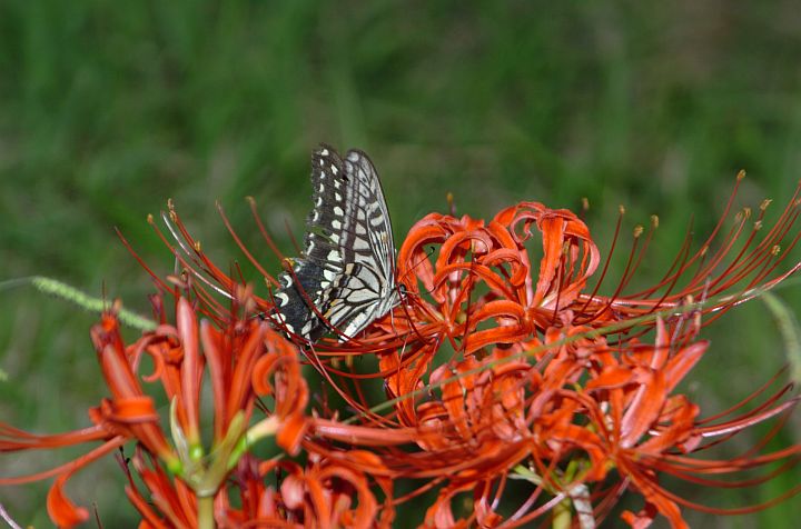 | 今日は曇後晴。蝶が彼岸花に止まっている。但しこれは9月26日の写真だ。 | ||