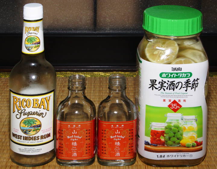 | 今日は曇時々雨。下の写真、右はかぼす酒だ。漬けてもう、2週間になる。 | ||
