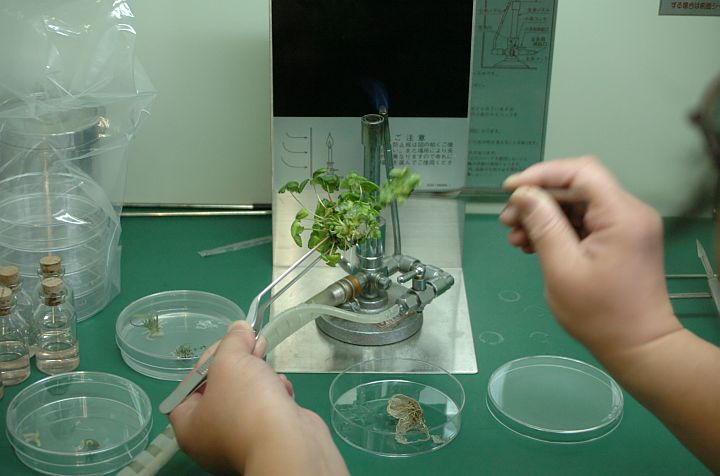 | それから培養の芽をちぎり出す。この後、試験管培地に植えて終わり。 | ||