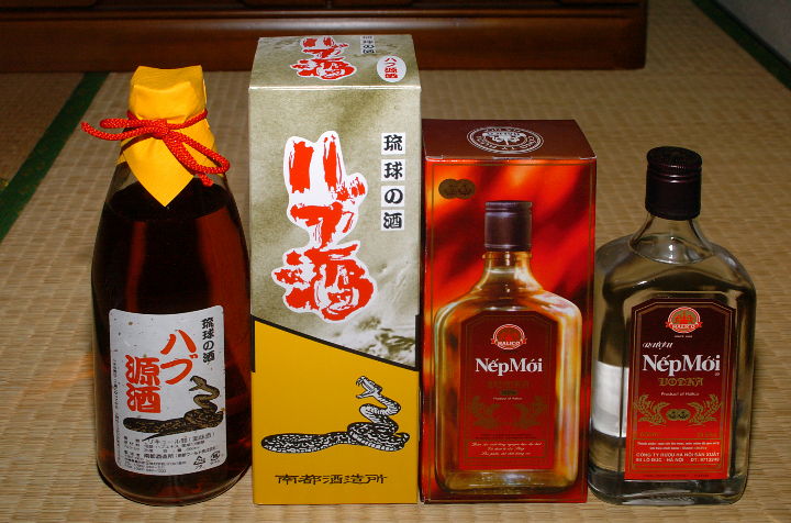 | そしてハブ酒とNepMoi(ネプモイ)。NepMoiは、穀物の香りが残るベトナム風ウォッカ。 | ||