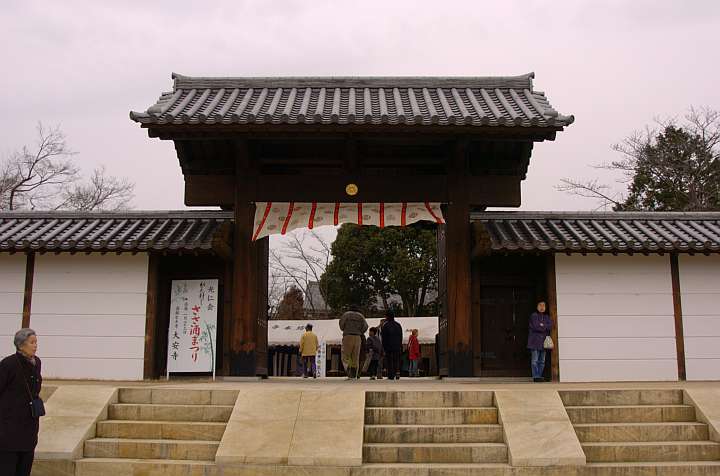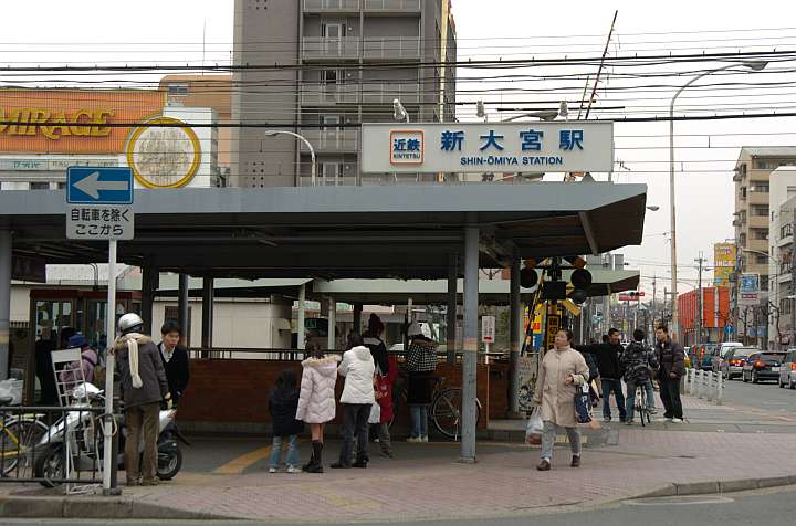 | 今日は晴。昨日、大安寺·光仁会へ行った。光仁会とは聞き慣れぬ言葉だが、要するに癌封じ笹酒祭り。竹筒で暖められら酒を美女が振舞う、奈良の冬の風物詩だ。先ず、下の写真は近鉄新大宮駅。ここから大宮小学校沿いの道をひたすら、南下する。 | ||