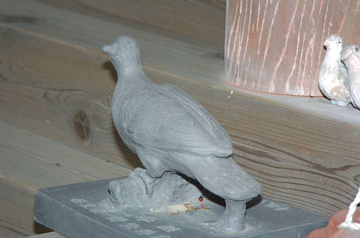 | 本殿をこの様な狛鳥(?)や、その他右上に見えている無数の鳥の置物が守る。 | ||