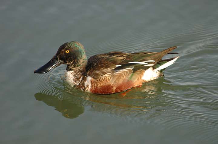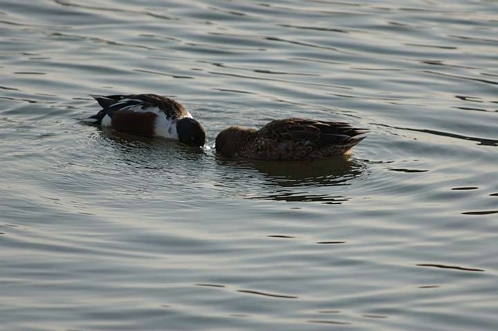 | 今日は晴時々曇。早速、昨日買ったD70のテスト。近所の池には下の写真の様に、嘴を水面に潜らせてくるくる回るカモがいるが、どうもこれはハシビロガモであるらしい。 | ||