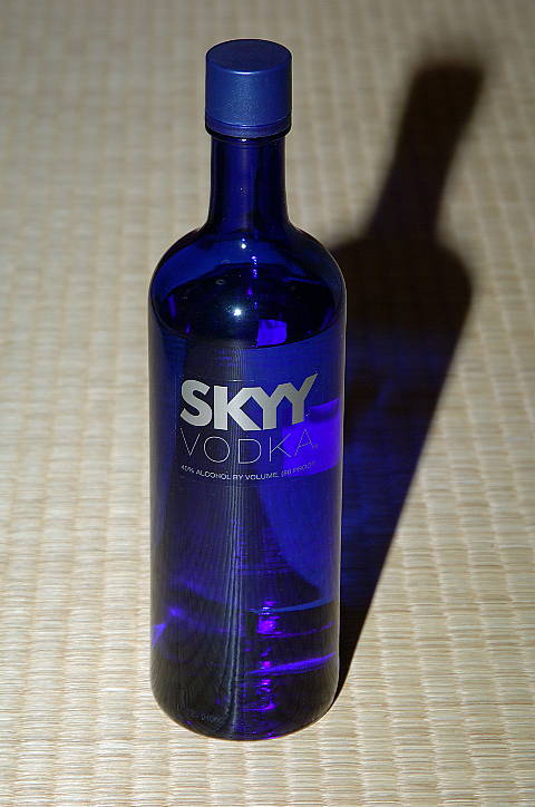 | 今日は晴。下の青い瓶はSkyy Vodka。但し中身は当然、透明だ。 | ||