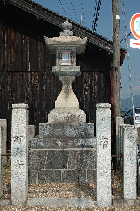 | 八幡神社方向へ橋を渡らず左に曲がると石灯篭。 | ||