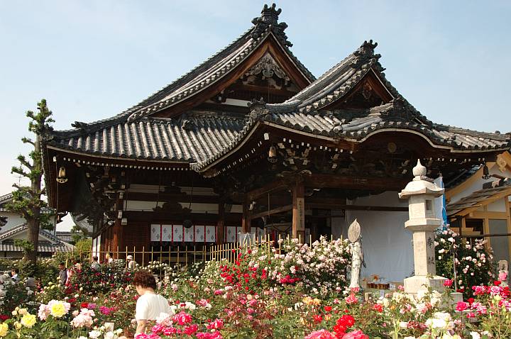 | さすがに薔薇の古刹。境内には所狭しと薔薇、そしてハーブも並んでいる。 | ||