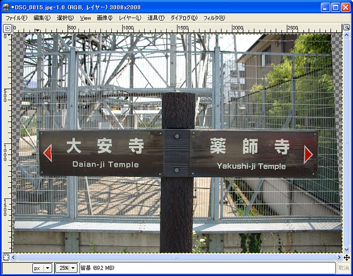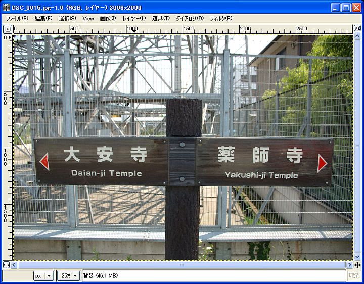 | 今日は曇後晴。GIMPはLINUXブームの頃有名になったフリーの画像処理ソフト。最近、その多機能ぶり故Windowsにも移植されている。長所は6/21に紹介したPhotoFiltreと同様、パースペクティブの操作が可能な点。早速、下に示す様に、下すぼまりの写真を調整してみよう。 | ||||||||||||||||||||||||||||||||||||||||||||||||||||||||