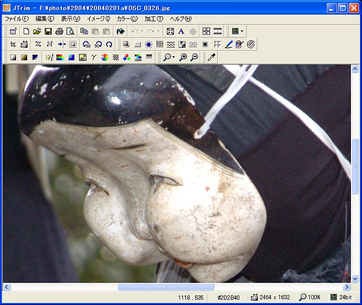 今日は曇一時雨。下の図はフリーの画像処理ソフトJTrim。パースペクティブ操作が出来ない、tiffが読み書き出来ない、と言った不甲斐ない点はあるが、素早く動くのが取り柄。