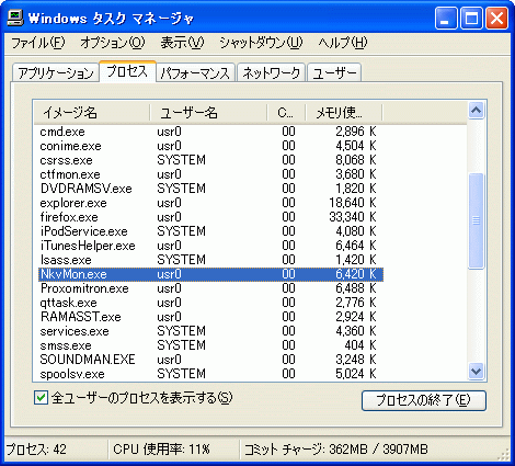 | そこでタスクマネージャーで調べた所、Nikon系ソフトは意識して立ち上げてはいないのだが、下に示す様に、NkvMon.exeと言うプログラムが常駐している。Nikon Viewを連想させる名称だ。 | |||||||||||||||||