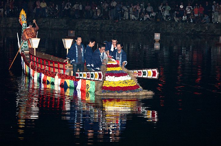 | 今日は晴後曇。下の写真は昨日行われた采女祭の最後、花扇を猿沢池へ沈めるシーン。 | ||