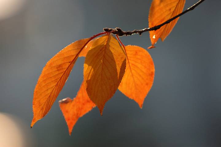 | 今日は晴。桜の葉がこんな色に。 | ||