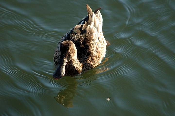 | 今日は曇で、朝一時的に雨。雌のハシヒロガモ。 | ||