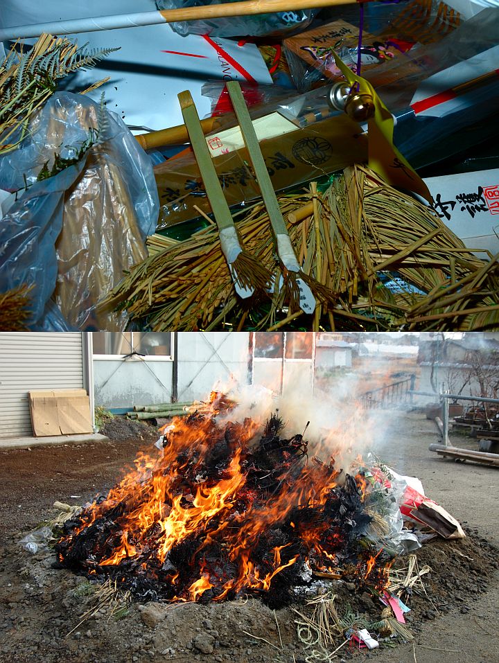 | 今日は曇後晴。近所の菅原神社のどんど焼で、昨年の甲斐神社の"苗"を焼いてもらった。 | ||
