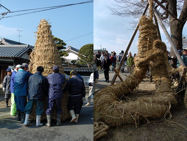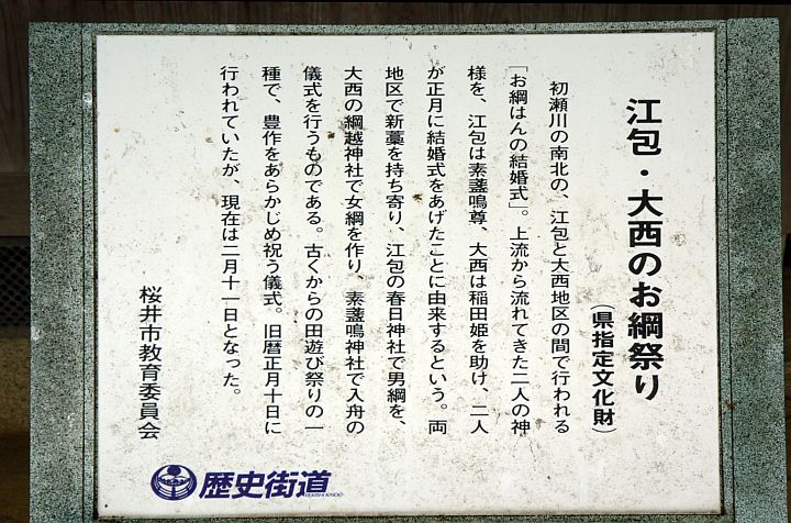 今日は曇後晴だが、夜には一時雨。文字通り、祭り三昧の日だった。先ず、江包·大西の綱掛けのクライマックスシーン。祭りそのものの始まりは午前8:00と、早い。桜井市·江包の春日神社を出発した雄綱と大西の綱越神社を出発した雌綱がスサオノ神社で目出度く結ばれる、と云うストーリーだ。