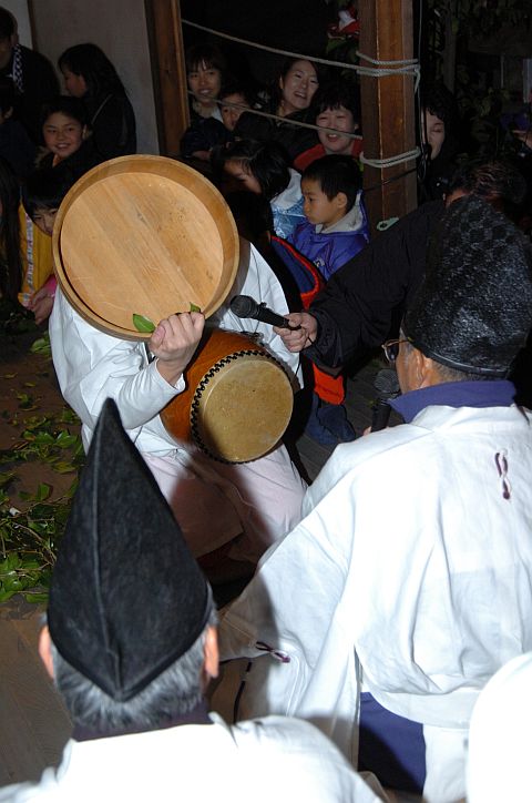 最後は川西町·保田の六県神社の御田祭り。豊作のみならず安産を祈願する祭りだ。下の写真は、出産のシーン。太鼓が子供だ。午後6:00から。