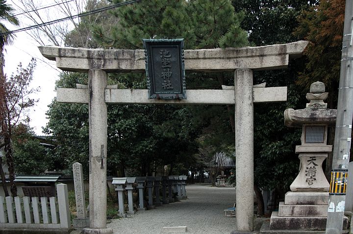 今日は曇。田原本町の東端にある池神社、正式には池坐朝霧黄幡比賣神社(いけにいますきはたひめじんじゃ)の御田祭を見物。午後2:00から、牛がぐるぐる回る。先ず、神社の鳥居。