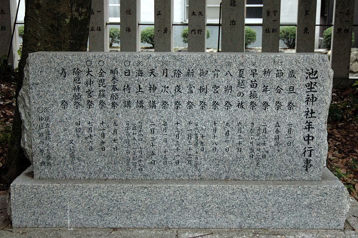 池神社の行事を刻んだ石碑。
