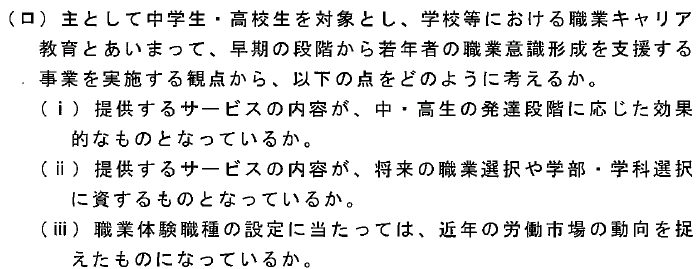 | こっちでは、中学生·高校生の学部·学科選びに資するとあるが、この様な行為は雇用保険法の容認する事業の範疇に属するだろうか。文部科学省の仕事だ。幼保一元化も出来ない癖に、教育者ぶるな。 | ||