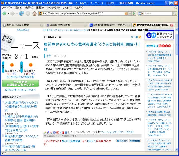 読売(香川県版)は乳幼児を抱える親、神奈川新聞は聴覚障害者の裁判員制度への参加のハードルを下げようとする動きを報じている。しかし、これが倫理的に正しいのか。何とか頑張って支えている生活を突き崩す可能性はないのか、或いは社会参加の促進が現実的な意味での権利たり得るのか。そうした話が全くないのに、ハードルを下げる事だけが望ましい事の様に報じられるのは、社会の木鐸としての機能の放棄だ。