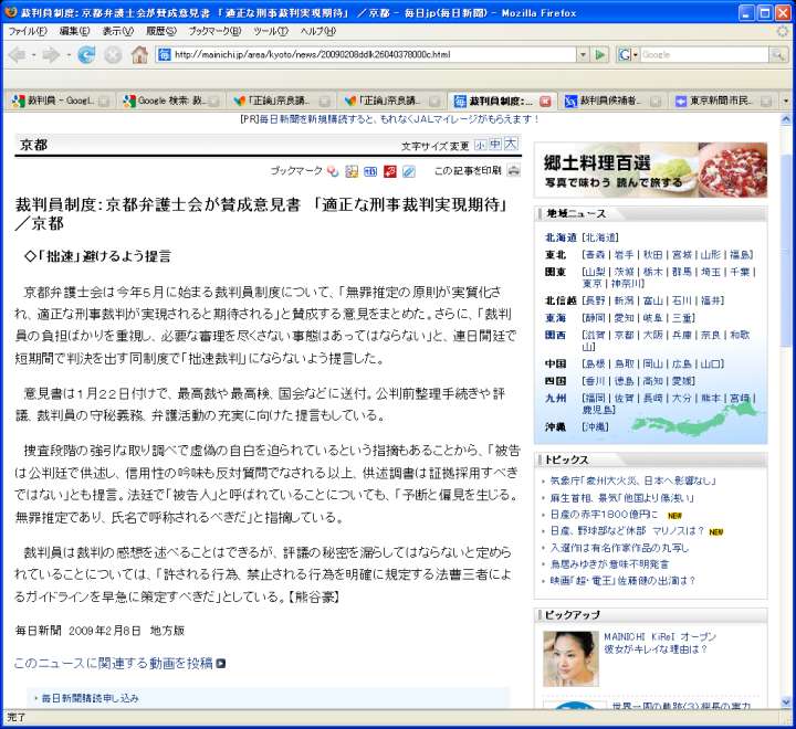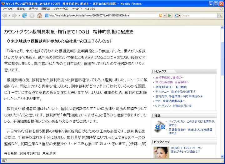 毎日を取り上げよう。何の変哲もない模擬裁判の体験記だが、注目すべきは、