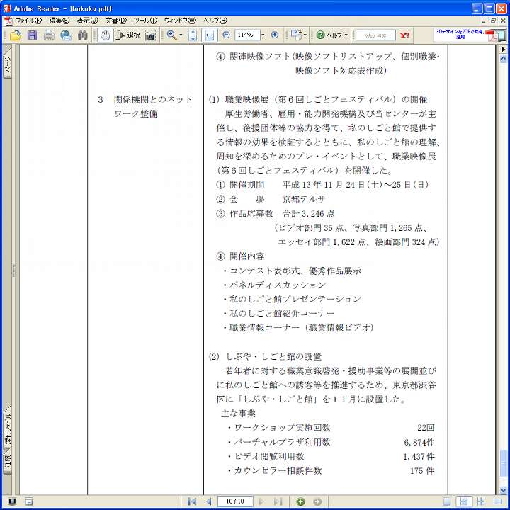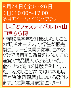 ついでだが、2001年に山口県山口市きらら浜で開催された"山口きらら博"でも、産業雇用安定センターが私のしごと館を盛り上げるプレイベントを開催していた様子だ。