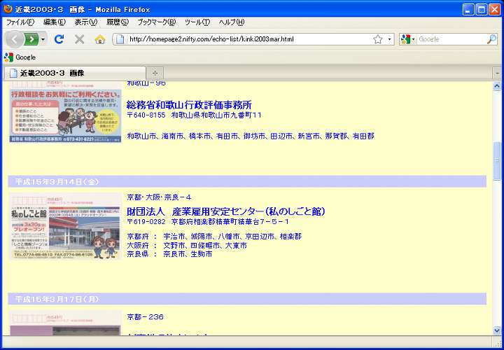 この産業雇用安定センター、私のしごと館があるけいはんな地区とは以前から関わっていた様子であり、1999年11月に"第4回しごとフェスティバル"と云うイベントを開催している。証拠として(株)けいはんな(www.keihanna-plaza.co.jp/08local_ic/keihanna_hatsu/36th/event/index-j.html)