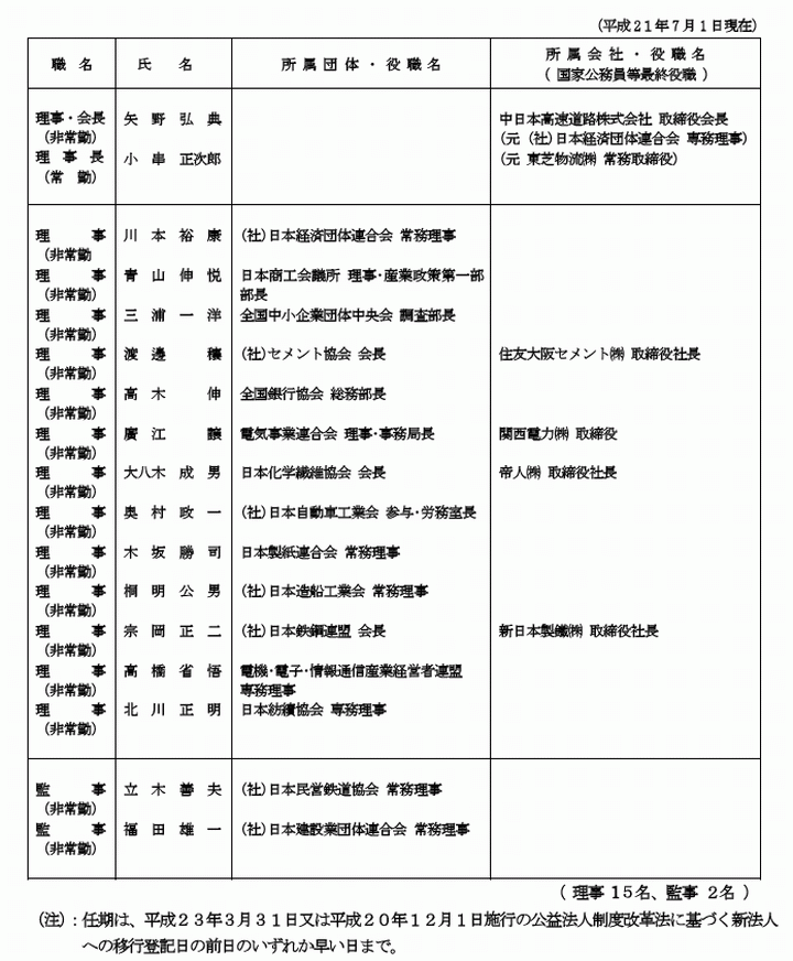 第2の話題:私のしごと館の、その少なくとも準備期に限るならば、背後に見え隠れする(財)産業雇用安定センター。今年7月現在の役員名簿だが、財界や業界団体の幹部ばかりである。中には官僚出身者もいるかもしれないが、ともかく、労働行政に於ける財界の出島である事だけは確かだ。実はこの"財界"と今年の"私のしごと館に係る建物等の有効活用検討会"での木村要町長(精華長)の発言(www.mhlw.go.jp/shingi/2009/04/txt/s0420-1.txt及びwww.mhlw.go.jp/za/0806/a133/a133.txt)と微妙に重なるのである。