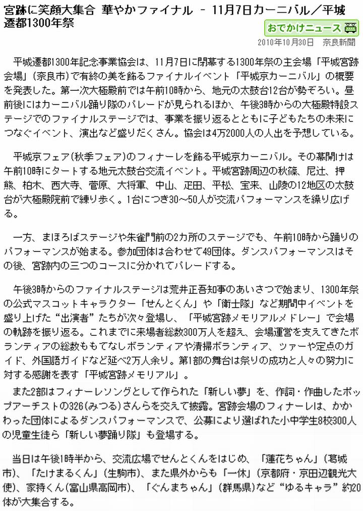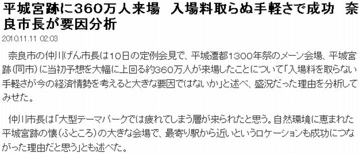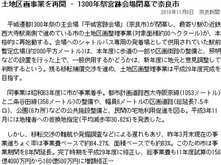 ![]() (1)毎日(mainichi.jp/area/nara/news/20101109ddlk29040568000c.html) ![]() (2)奈良(www.nara-np.co.jp/20101105103358.html) ![]() (3)奈良(www.nara-np.co.jp/20101109104430.html) ![]() (4)日経(www.nikkeibp.co.jp/archives/053/53277.html) | ||