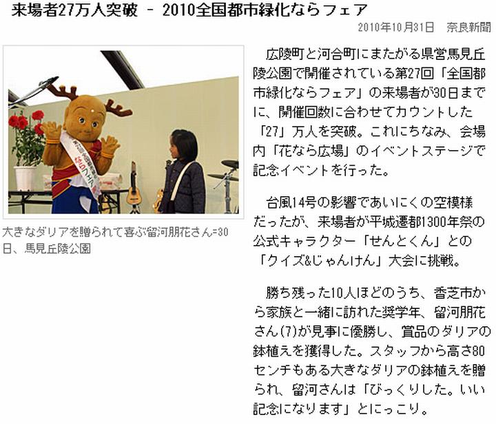 ![]() (1)産経(sankei.jp.msn.com/region/kinki/nara/101111/nar1011110203004-n1.htm) ![]() (2)奈良(www.nara-np.co.jp/20101111093209.html) ![]() (3)産経(sankei.jp.msn.com/region/kinki/nara/101111/nar1011110202003-n1.htm) ![]() (4)産経(sankei.jp.msn.com/region/kinki/nara/101110/nar1011100234003-n1.htm) | ||