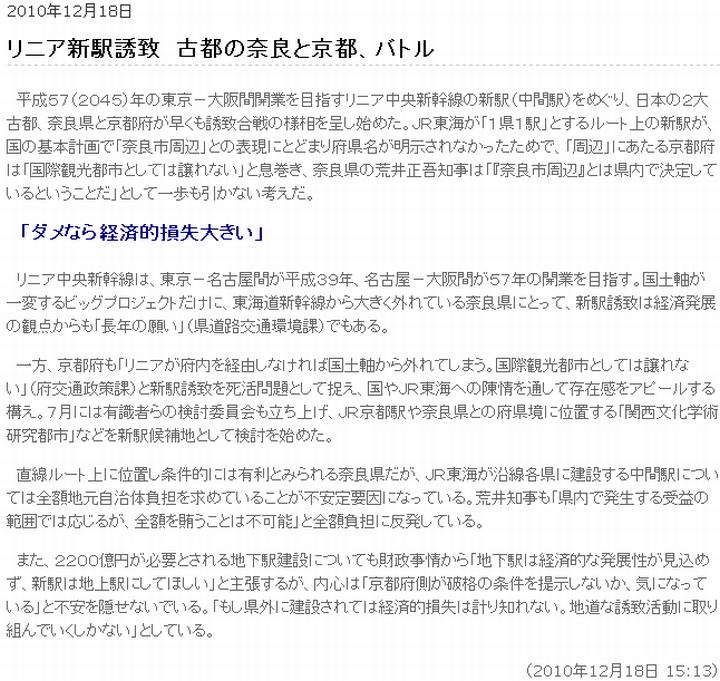 リニア新幹線と古都バトル:「奈良市周辺」 |