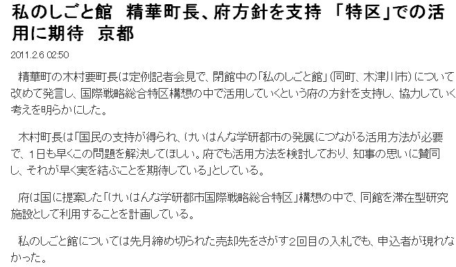 ![]() (1)産経(sankei.jp.msn.com/politics/news/110224/lcl11022409020002-n1.htm) ![]() (2)けいはんなプラザ | ||