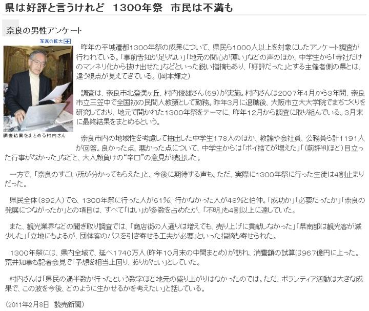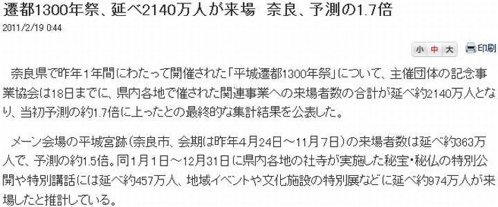 ![]() (1)読売(www.yomiuri.co.jp/e-japan/nara/news/20110207-OYT8T01169.htm) | ||