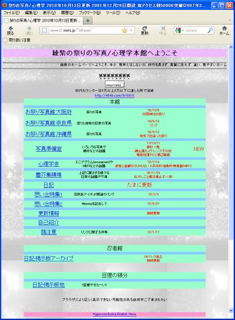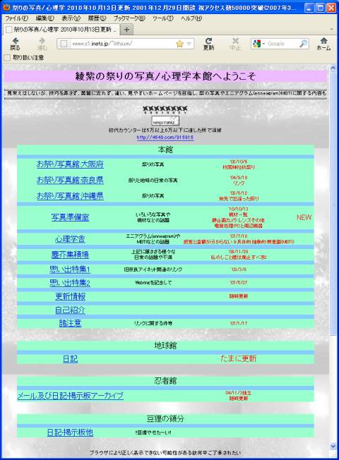 今日は晴。メールフォーム機能が忍者館(日記·掲示板アーカイブ)にある事を明示すべく、本館を一部改装。